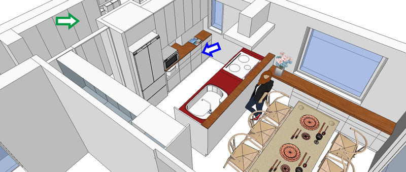 以下は対面キッチンで背後側に置く方法。