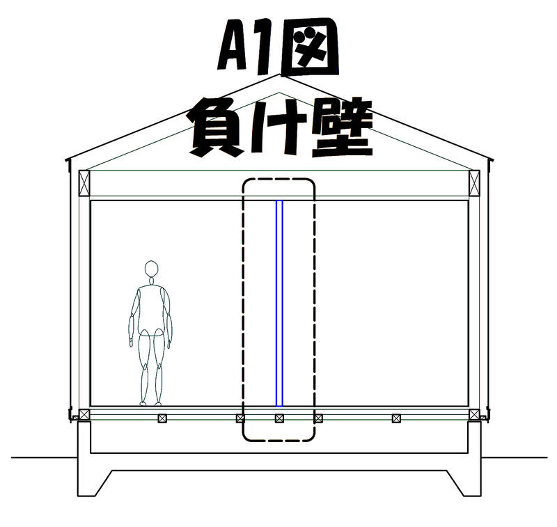 A2図はこの「負け壁」を取り払った場合です。(簡単に一部屋になります。)