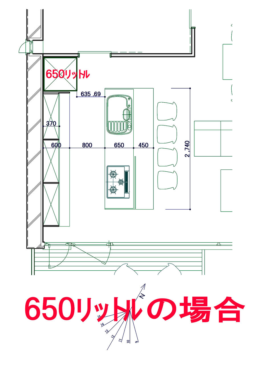 1台で考えようとするから650リットルが最大となり出っ張ってしまいます。