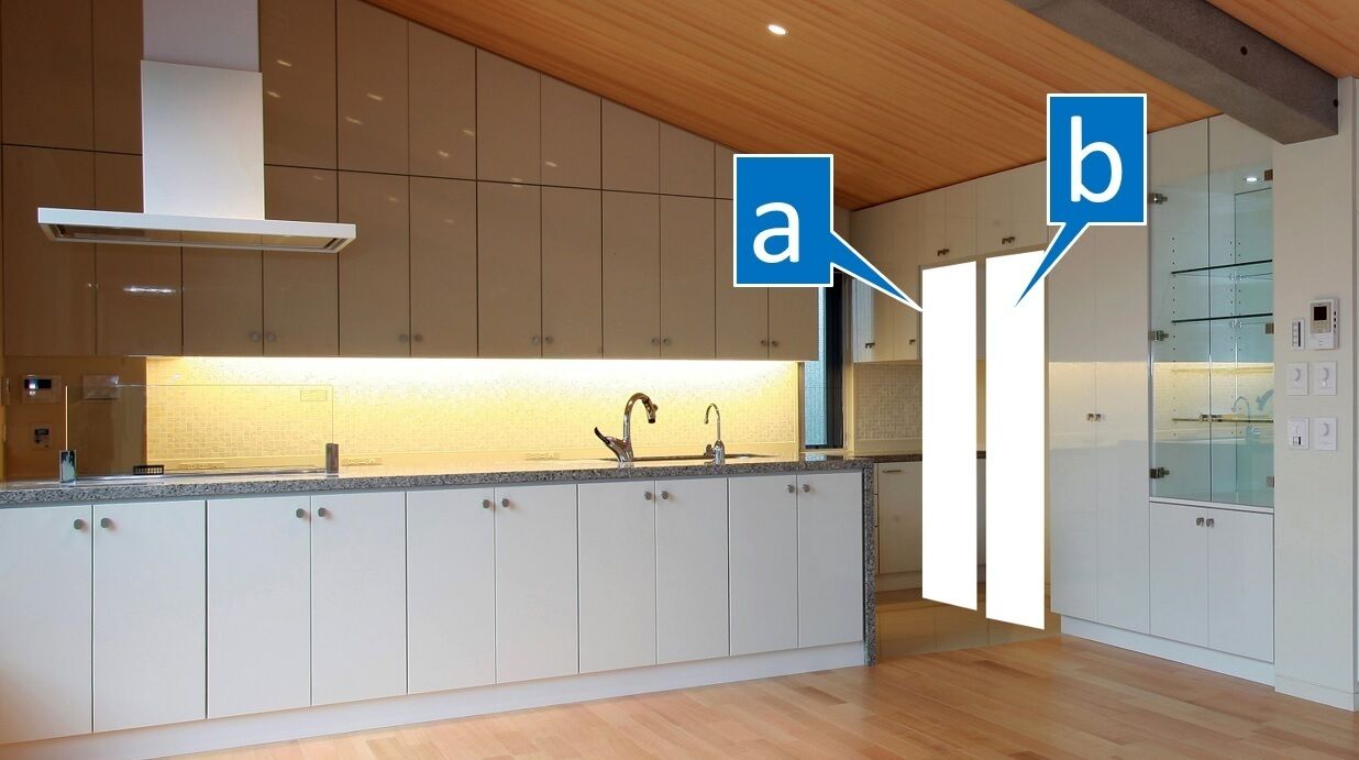 写真の位置に冷蔵庫・・・aとbを置こうとしています。