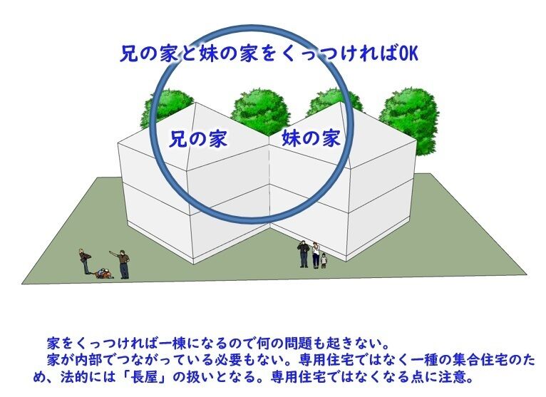 「違法・一つの敷地に2棟以上建てられない場合。」