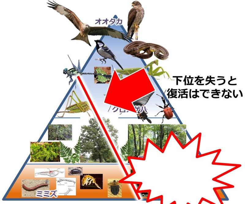 つまり、下辺を失うと食物連鎖である以上、上位が失われる。