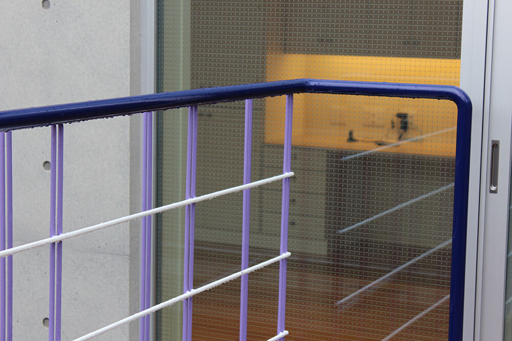 「青い」手すりにした。
