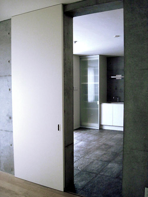 写真はコンクリート打ち放し壁に設けられた引き戸。