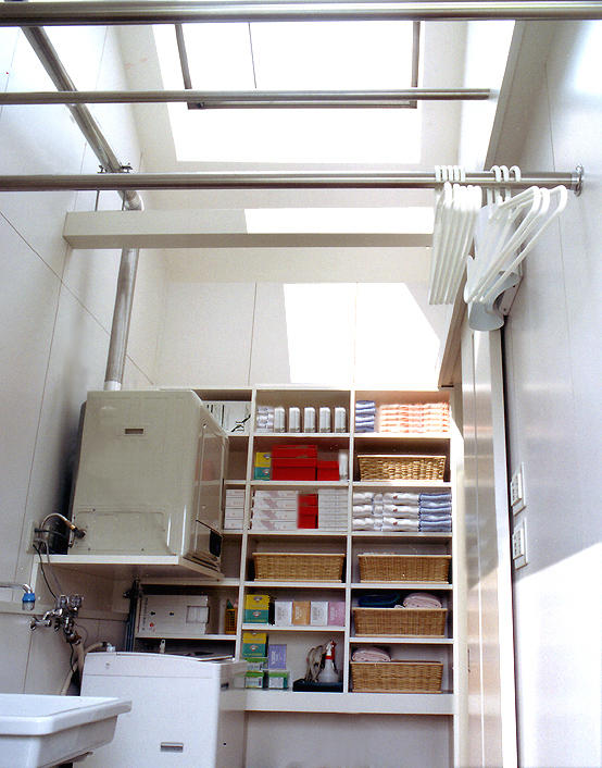 写真は少しゆとりのあった住宅での洗濯室と干し場。
