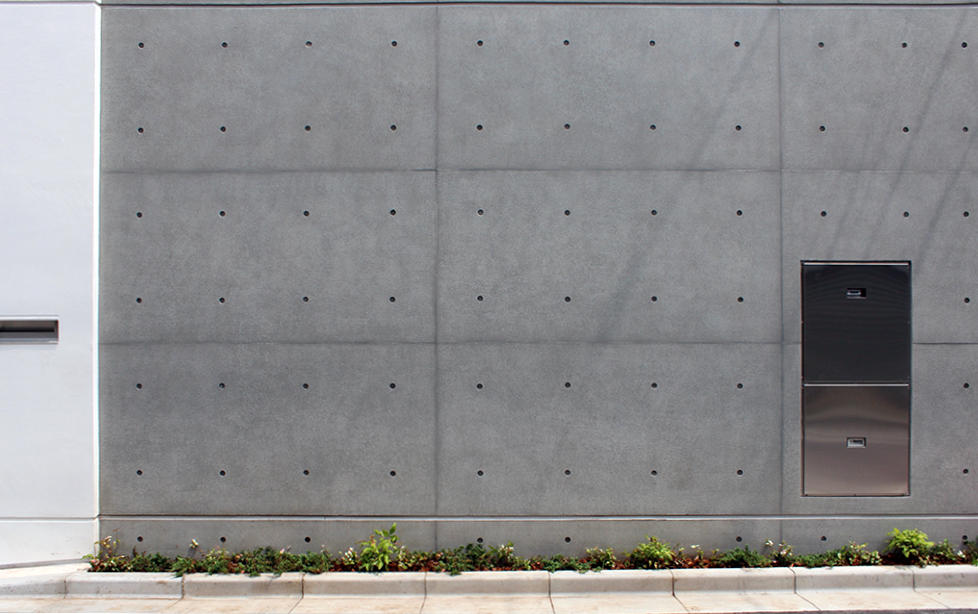 写真は建物正面の打ち放し部分。