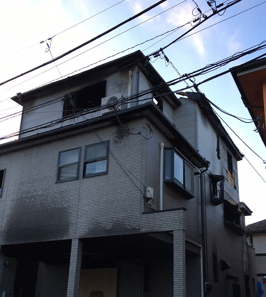 ②の事例、2階で起きたため、内装は燃えましたが骨格が残った。既存骨格を利用して再建できました。