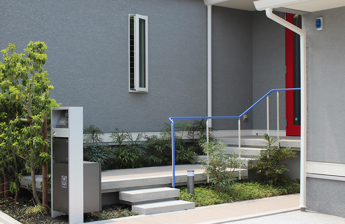 グランドカバーで土を覆い、コンクリートデッキが植栽の上に浮かぶ感じをイメージしました。
