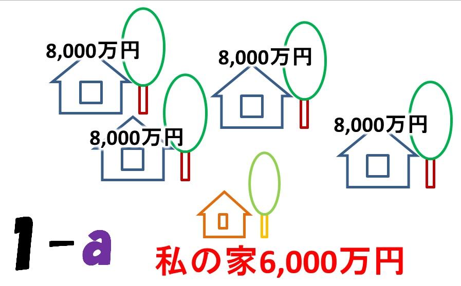 まわりの家がみな8千万円のとき、自分の家は6千万円だ、という場合。