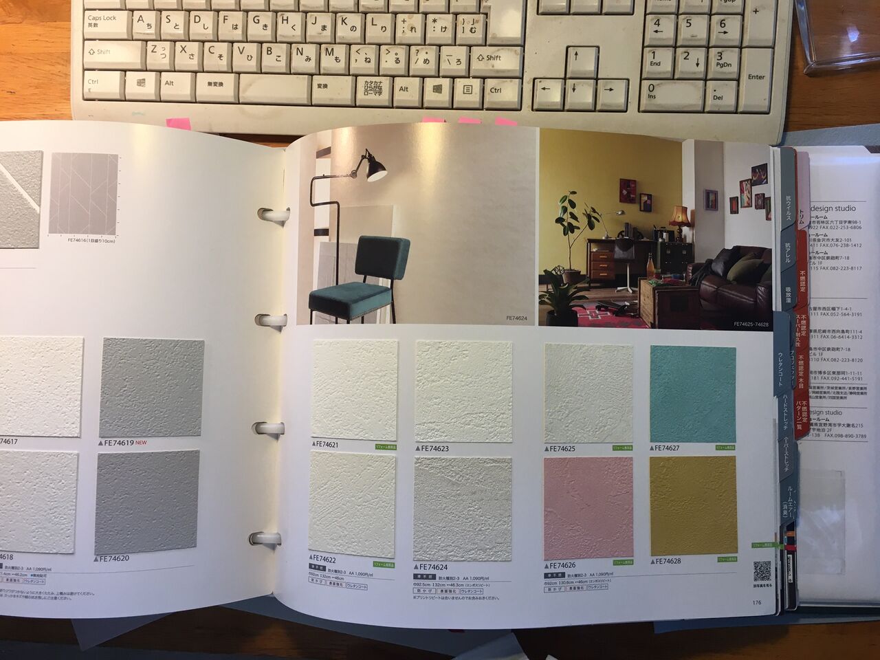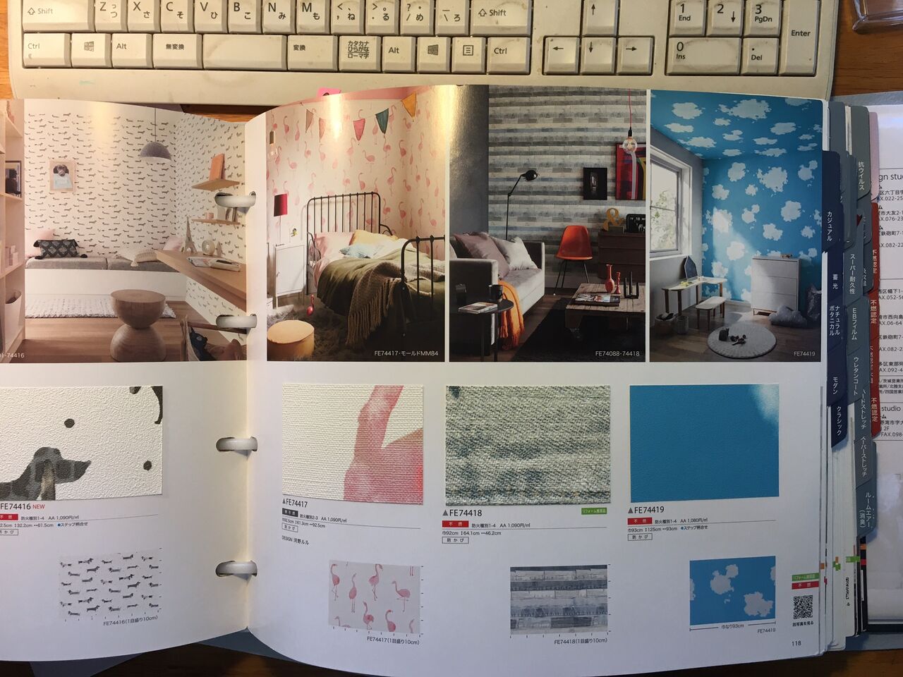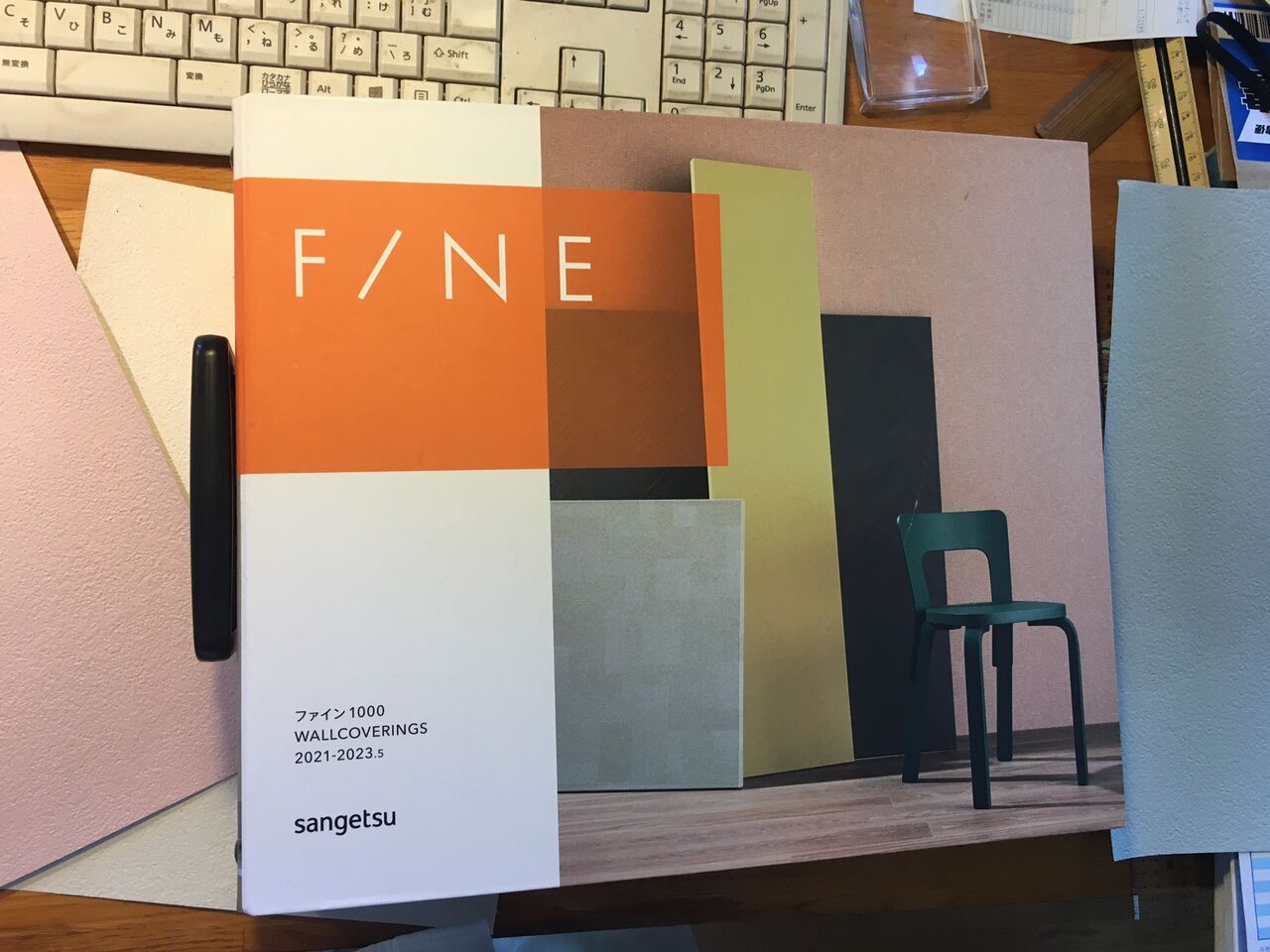 これはビニールクロスのサンプル帳、ファイン1000シリーズ、メーカー:サンゲツ。