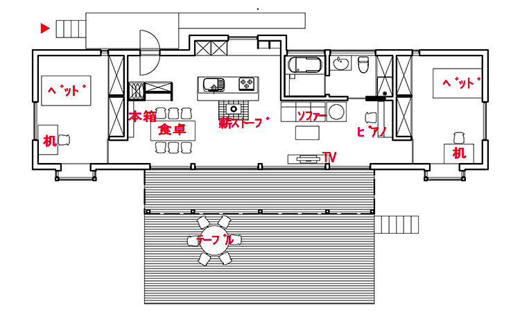 家具を配置した図面。