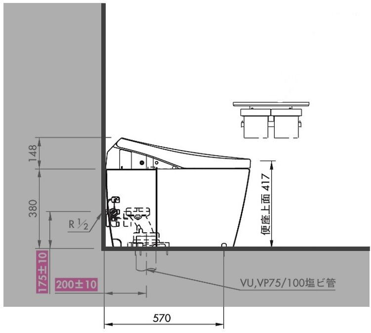 (TOTO設計施工資料集2024年版を利用して描いています。)