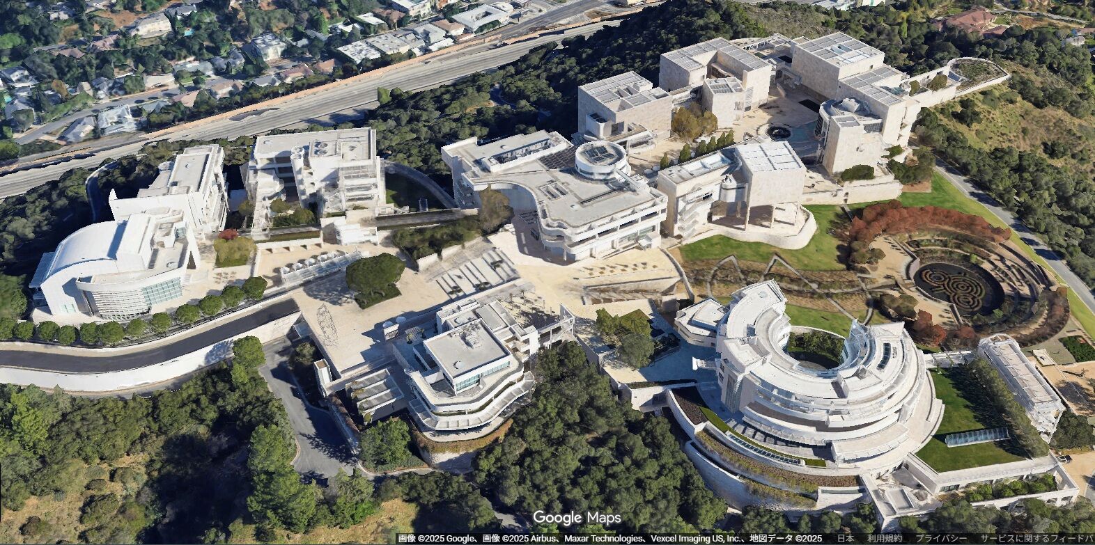 写真に見えている白い建物全部がゲッティセンター。(Google Maps)