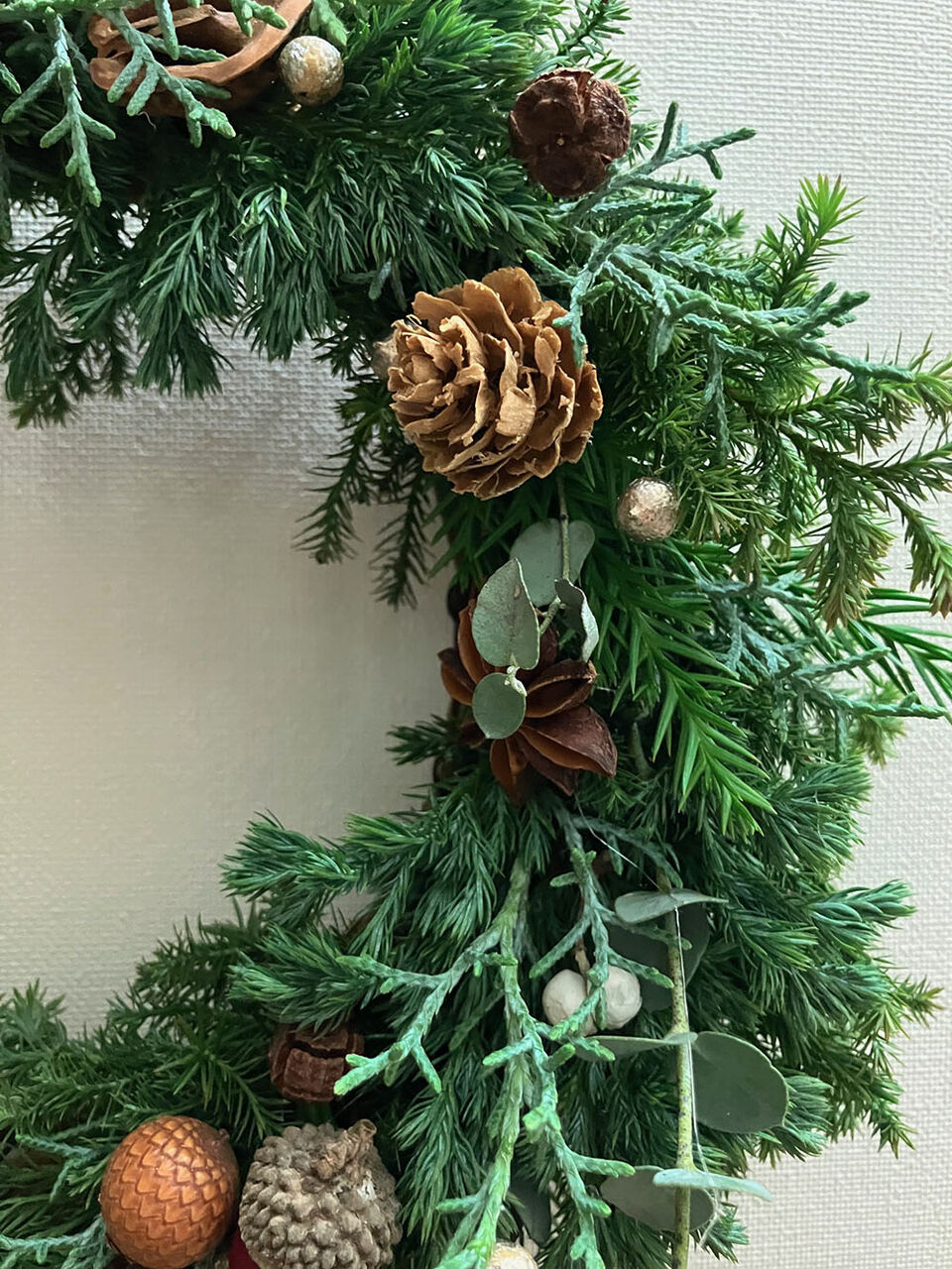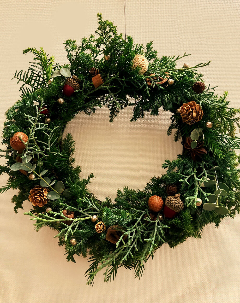 2025年12月02日 フレッシュ・リースはにおいが格別 普通は花の香り・・・という言い方だと思う。 ところがフレッシュ・リースは葉のにおいだ。 針葉樹のにおいが部屋に広がる。 ドライフラワー・リースなら玄関の外に飾るのかもしれないが、フレッシュ・リースは家の中の方がにおいが楽しめる。 玄関の中に飾った。 # 我が家の奥さまがつくった。 材料探しとその選択吟味が肝のようだ。 会社の仲間につくり方を教えてあげて・・・、我が家用にもつくってきた。 ↓ 登録すると更新情報が届きます < 前の記事次の記事 > コメント コメントフォーム 名前 コメント 記事の評価 リセット リセット 顔 星 情報を記憶 コメントを投稿する